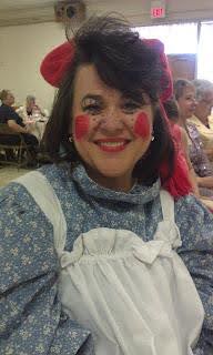 After singing a few songs our special speaker for the afternoon was the multi-talented and beautiful Joy Miller who related our lives as a Christian woman to the different types of dolls. Her talk was great, and the funny thing is, I had written a script for several of us to act out which was geared to the younger ladies in attendance. Some of the things I put in my script Joy brought out in her talk. It was almost as if we had gotten together and planned it that way, but trust me, we didn’t. Besides, if you know me, you know that pre-planning anything is NOT one of my strong suits. I find life much more thrilling when I fly by the seat of my pants (or pantaloons, in this case.)